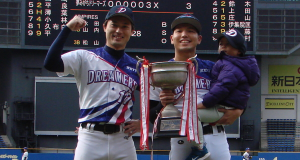 KAYOIだったが、7回の攻撃はあえなく3者凡退に終わり試合終了。夢みがちドリーマーズの先発・上田が要所を締める投球で見事な完封勝利を飾った。 |