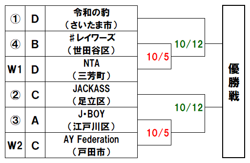 | 昨年5部でCSに出場したLondon Knocks(松戸市)を中心とした優勝争いになりそうだ。London Knocksはチーム2冠王の大橋という屈指の強打者がいる。 投手陣も粒ぞろいで強力な陣容を誇る。Dream Weavers(さいたま市)はエース村井が投打に活躍し結成1年のチームをCSに導いた。勝負強いTOKYO RED WINGS(板橋区)との1回戦は好カードだ。下段は安定したエース・上間がいる駒沢Blue Oceans(川崎市)が一歩リード。初戦で当たるメンバー全員25歳以下と若い千葉GANGS(千葉市)は勢いに乗るとおもしろい。PwC Arrows(千代田区)は1番・井澤は俊足で長打も打てるリードオフマン。守っては東野から淀川、佐藤(春)と繋ぐ継投で勝ち上がってきた。対するRSA(所沢市)は3年前に競り合いの連続だったCSを勝ち切りプロスタにたどり着いた。その経験は相手チームにとっては脅威だ 。 |