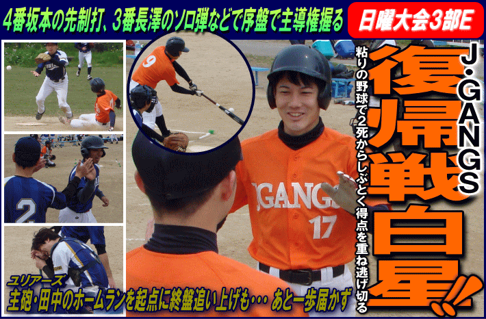 | J・GANGS(川崎市) | 4 | × | 3 | ユリアーズ(川崎市) | ||