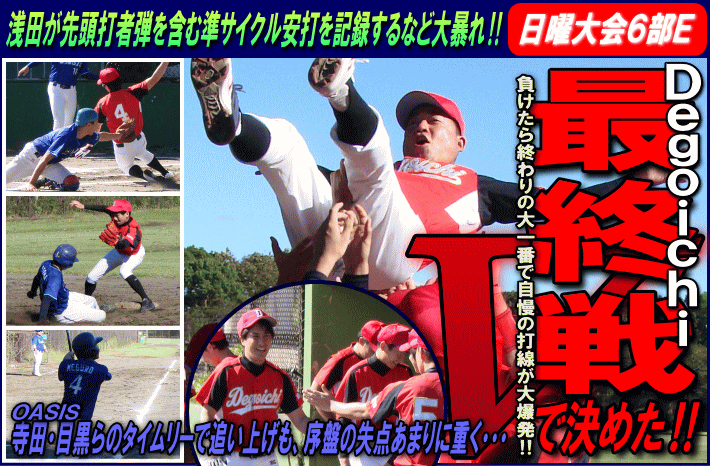 | ▲負ければV逸というあとがないDegoichiだったが、ノビノビ野球に徹した結果、2ケタ安打の猛攻で打ち勝ち、見事に最終戦Vを決めた。 |