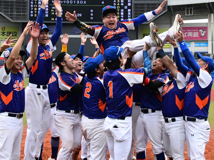 「マリンスタジアムで試合ができて感動でした。最初は緊張というよりも、はしゃぎ過ぎでしたね(笑) メンバー全員を試合に出すこともできて本当に良かったです。負けてしまったのは悔しいですが、思う存分に楽しみました。これからも勝てるチーム作りを目指して、常にみんなの意見を聞きながら信頼するこの仲間たちと野球を続けていきたいですね」 |
