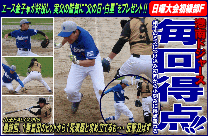 | 港南ドジャース(川崎市) | 7 | × | 2 | 山王FALCONS(川崎市) | ||