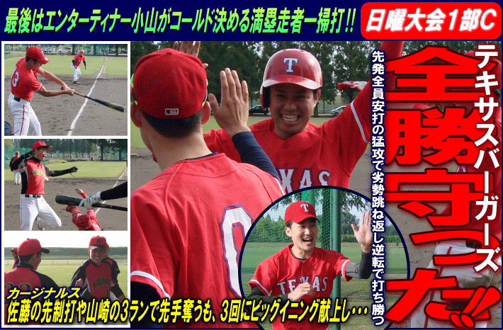 | テキサスバーガーズ(武蔵野市) | 13 | × | 6 | カージナルス(さいたま市) | ||