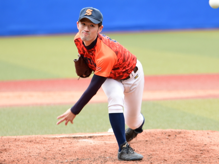 | 「4度目の正直で念願だった関草の頂点を取ることができて嬉しいです(笑) うちは先頭の稲場の出塁がカギなのですが、今日の試合も彼の足で先制点を奪えました。やはりいつも通りの野球が出来たことが大きかったですね。投手陣も先制点をもらえて、少し余裕を持ってマウンドに立てたのかなと思います。優勝戦はいつ来ても良いものですね。試合前に整列をしての国歌斉唱はいつも感動を覚えます。グッと雰囲気が締まるというか力をもらえますね。今度は追われる立場になると思いますが、またチームでしっかりと練習して、来年連覇を狙います」 |
