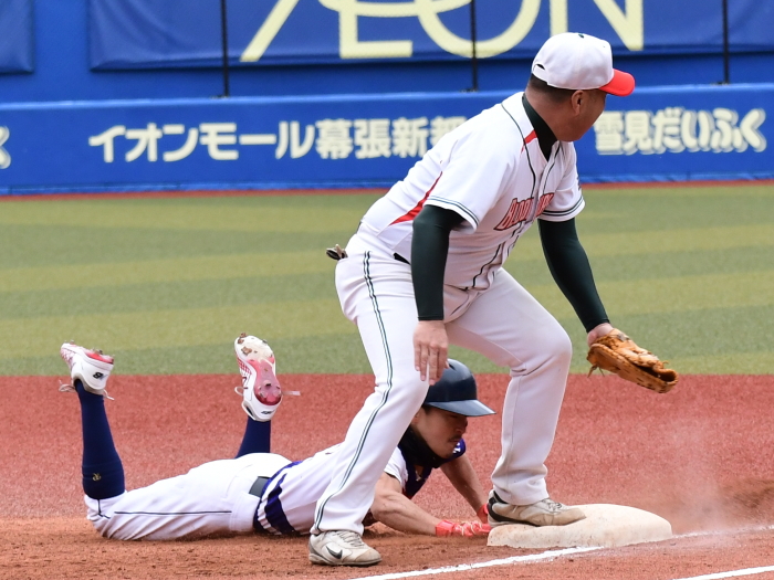 | 「6回の3失点は4つのエラーが重なってしまい相手を優位にさせてしまいました(苦笑) そこがすべてでしたね。今日は残念ながら負けてはしまいましたが、来たメンバーを全員出場させることができましたし、とても満足しています。今年は例年以上にメンバーの集まりが悪く、レギュラーシーズンでは苦労をすることも多くありましたが、こうしてみんなでマリンで目一杯楽しむことができて、その苦労も吹っ飛びました(笑)
