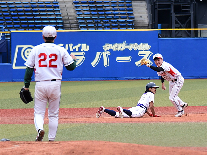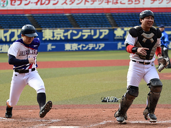 | BLOOD KAYOIは初回、2回と得点圏にランナーを出すものの後続が倒れ惜しくも先制機を逃す。一方の夢みがちドリーマーズも、初回は1死2塁で牽制死、2回は1死1・2塁のチャンスを生かせず無得点に終わる。その後も走者は出すものの決定打が出ず、両チームともに0行進。試合が動いたのは終盤6回だった。夢みがちドリーマーズは1番小川がヒットで出塁すると、次打者の送りバントが相手守備陣の乱れを誘い、この間に俊足・小川が1塁から一気に生還。ついに重い均衡を破った。なおもチャンスで続く3番伊藤がレフトオーバーのタイムリー3ベースを放ち、さらに1点を追加。その後タイムリーエラーでもう1点を加点した。何とか反撃に転じたいBLOOD