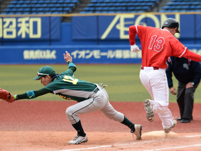 | ウインズ足立が中盤戦を制し、日曜4部優勝を決めた。試合が動いたのは4回。ウインズ足立は無死2・3塁のチャンスで、このところ打撃不振だった6番飯野がレフトにタイムリー2ベースを放ち、2点を先制する。5回には2死2・3塁の場面で、途中出場の栗原がタイムリーを放ち勝負を決めた。一方の東京ROCKETSは、初回に3番川本、4番大圖の連打で2死2・3塁のチャンスを作るも無得点。3回には1死1・3塁から、内野ゴロの間に果敢にホームを狙うも間一髪で本塁憤死。いずれも先取点のチャンスに得点が奪えず、最後まで流れに乗れなかった。 |