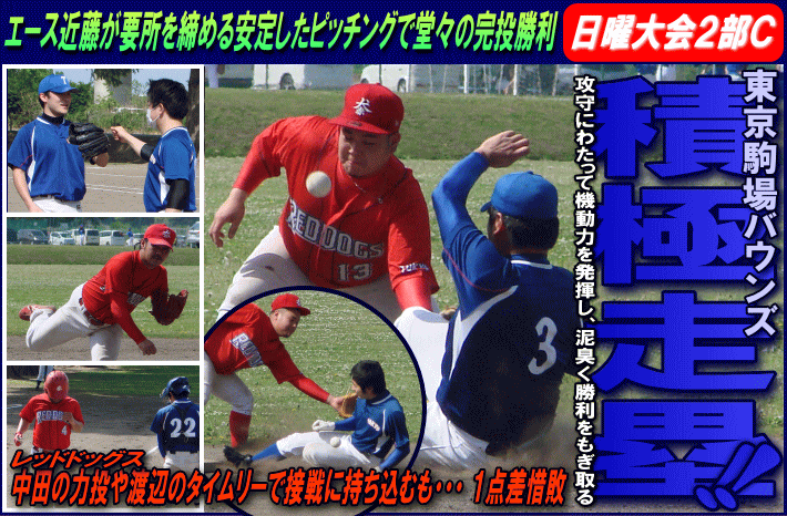 | 東京駒場バウンズ(目黒区) | 2 | × | 1 | レッドドッグス(板橋区) | ||