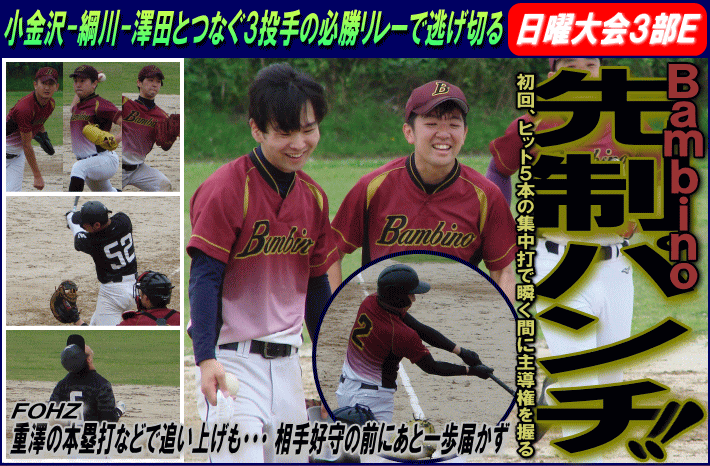 | Bambino(横浜市) | 3 | × | 2 | FOHZ(川崎市) | ||