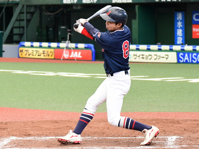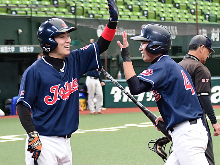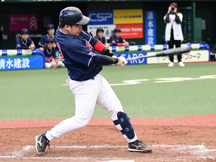 | 「今日はメットライフドームで試合ができるということで、最初はみんな緊張気味でしたね。大舞台ですがあくまで日曜日2部の優勝が目標ですので、先発オーダーは勝ちに行くメンバーを選びました。うちは打線よりも守りからリズムを作るチームです。今日の試合でもいつも通り守れた試合ができたと思います。またうちは若い子が多いチームで今後もまだまだ伸びしろがありますので、わたしが上手く手綱を引いてチームを引っ張っていきたいと思います」 |