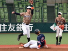 | J-STYLEが投打に持ち味を存分に発揮し、日曜大会2部を制覇した。J-STYLEは初回にリードオフマンの今井がいきなり四球で出塁。その後、自慢の快足で2盗・3盗を立て続けに決めると、次打者の犠牲フライで生還し瞬く間に先制点を奪う。3回には8番須賀、9番根本の連続安打の後、1番の今井の投ゴロがミスを誘い、まず2点を追加。なおも無死1塁の場面で今井がすかさず2盗を決め、その後内野ゴロと犠飛で4点目。攻撃の手を緩めないJ-STYLEは4回にも相手守備の乱れを突き2点を加点。7回には1死3塁から2番渡辺のタイムリーでダメ押しの1点を奪い完勝した。一方の曽根軍は、J-STYLEの5人の投手による継投の前に出塁はわずか2四球のみと打線が沈黙。通算3度目となる優勝戦進出も準パーフェクトを味わう悔しい結果となった。 |