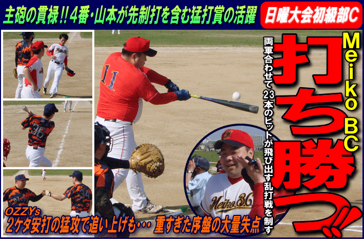 | ▲2回に四死球を絡め一挙9点のビッグイニングを作ったMeiko BCが、互いにノーガードの壮絶な打撃戦に打ち勝った |