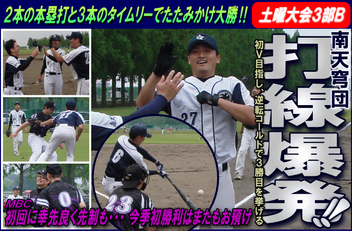 | ▲この日おろしたばかりの新バットが火を噴き打ち勝った南天穹団。昨年逃した初Vへ、負けられない戦いが続く。 |