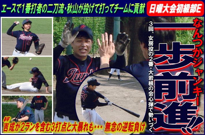 | ▲暫定首位のなんつかジャンキーは自慢の強打で見事に逆転勝利。初のグループ優勝へ向け、また一歩前進した。 |