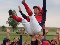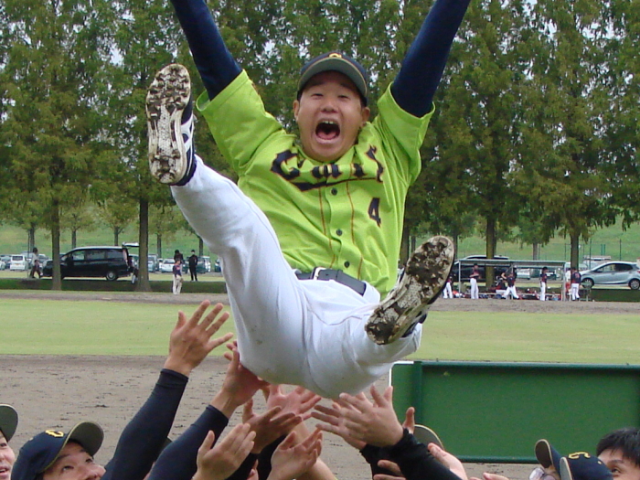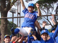 | チームのテーマは「シンキングベースボール」。昨年CSで敗れたびゃっこたいのエース・石川を攻略し悲願達成。 |