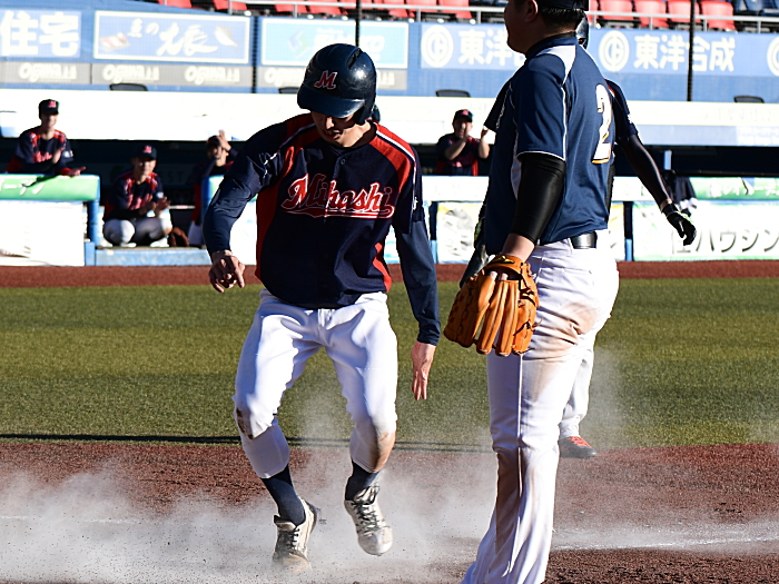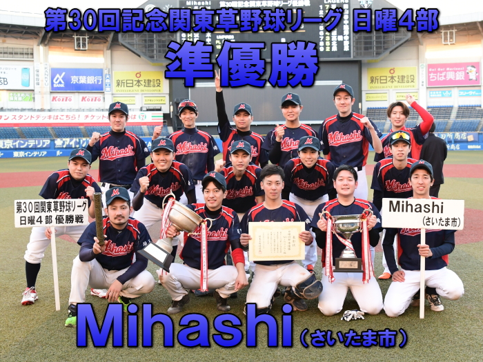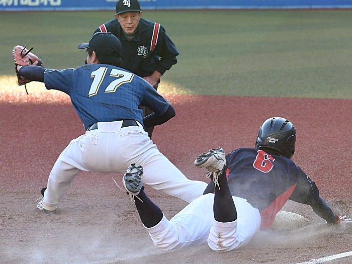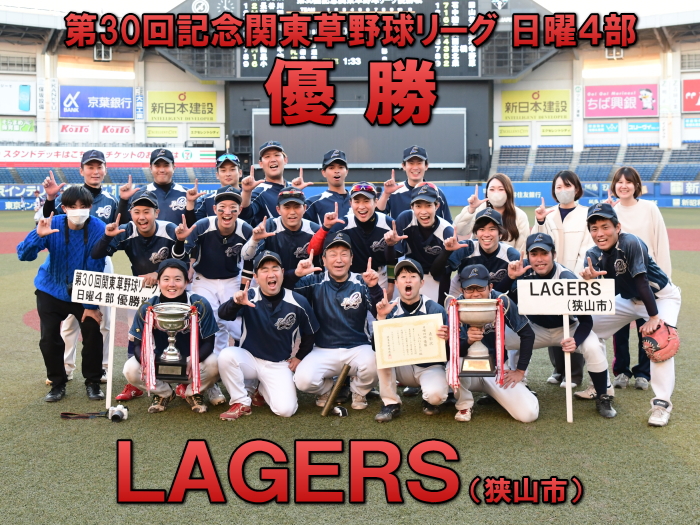 | LAGERSは初回、四球とヒットで1死1,3塁とすると4番・矢中のタイムリー2塁打で2者が帰りいきなり2点を先制する。反撃したいMihashiは4回裏、1死からヒットで走者を出すと3番・福島のタイムリー3塁打で1点を返すと、次打者の時パスボールの間に走者がかえり2−2の同点に追いつく。その後両チームとも得点が入らず試合は最終回に突入する。LAGERSは、四球とヒットで1死1,2塁のチャンスを作ると5番・柴田がライトへのタイムリー2塁打を放ち1点を勝ち越し。その後2,3塁から6番・神田のライトへの犠牲フライで1点を追加し4−2とリードを広げた。後のないMihashiはその裏猛反撃を見せる。ヒットと四球でノーアウト満塁の絶好のチャンスを作ると5番・堀のライト前ヒットで1点に詰め寄りなお無死満塁。同点、サヨナラの絶好のチャンスが続く。しかしその後まさかの3者連続三振を喫しLAGERSが最終回の大ピンチを凌ぎ4−3で逃げ切った。 |