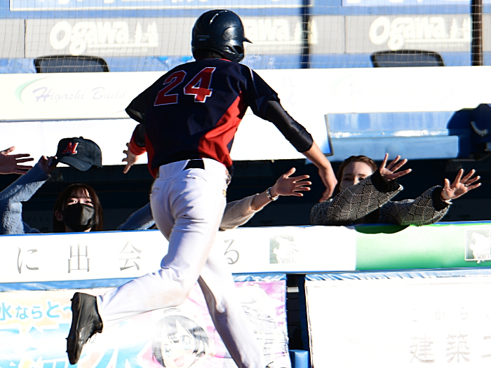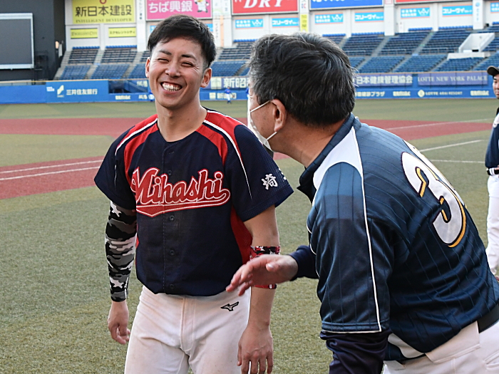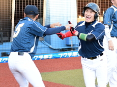 | 「シーズン中はどちらが勝ってもおかしくない試合が続きましたが、何とか逆転勝ちを重ねてきました。今日は最終回に無死満塁のチャンスを作り、手応えがあったのですが、今回はサヨナラ勝ちとはならず残念でした。うちはチャンスには代打攻勢を仕掛けますが、今日の試合ではうまく機能しませんでした。敗因は失点にも絡んだ初回のエラーですかね(笑)。打たれて負けたという感じでは無かったので、そこが悔しいです。しかしみんなが緊張すること無く、マリンを楽しんでくれたので良かったです。ここに来ることが一年間の目標でしたので達成できて良かったです。これからもみんなで切磋琢磨しながら、チーム力をアップしていきます」 |