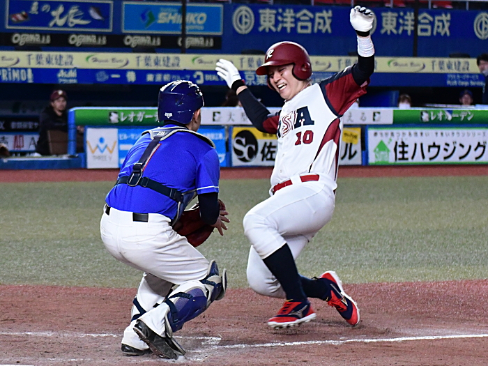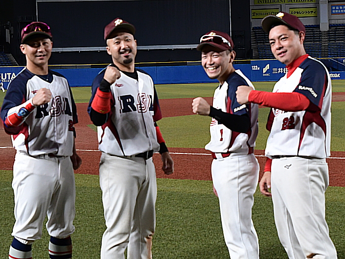 | 「いや〜(笑)今日は残念でした。初回は打線がつながったので、この勢いでもう少し追加点を奪いたかったですね。RSAさんの打線も徐々に火が付き、気が付いたら逆転を許していました。3回には満塁のチャンスを作り、ここで得点が入っていたら流れが変わっていたかもしれませんね。スタジアムに入る前はみんな緊張気味でしたが、試合が始まってからはみんな楽しそうで興奮していました。思っていた以上に照明が綺麗でみんな感動をしていました。今日は悔しい準優勝に終わりましたが、ZOZOマリンで試合ができて本当に良い一年になりました。来年は全体練習の時間を作るなどして、個々のレベルを上げたいとと思います」 |