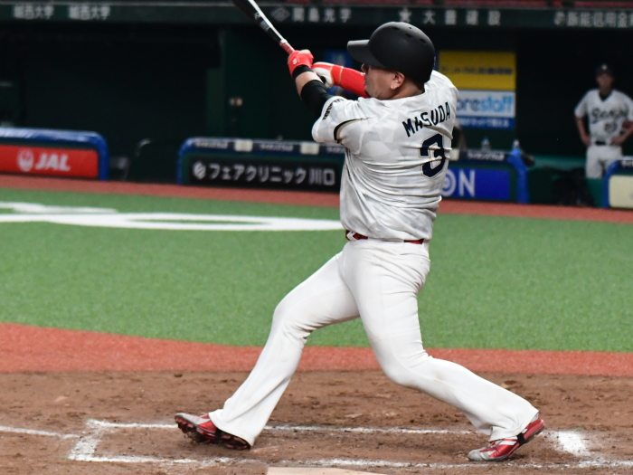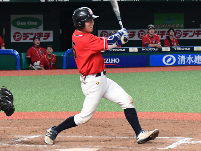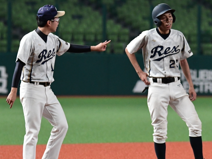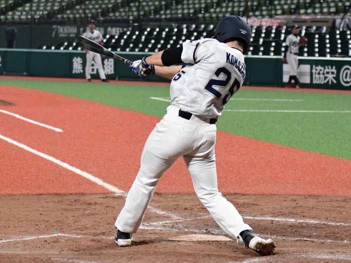 | 「優勝するためにここまでの全試合、みんなで声を出し合って来たので負けて本当に悔しいです。今日の試合も勝つためにベストメンバーで臨みましたし、お祭りでは無く1年間の締めくくりの意味でも優勝で終わりたかったです。すべては打てなかったのが敗因ですね。チャンスは作りましたがあと1本が出ませんでした。エースの駒アは一人で良く投げ切ってくれました。彼のためにももう少し打線が奮起したかったのですが、相手の投手が一枚上手でした。来シーズンこそは優勝をするために、みんなで切磋琢磨して、上の舞台でも戦いたいと思います。応援をしていただいた方には感謝の気持ちで一杯です」 |