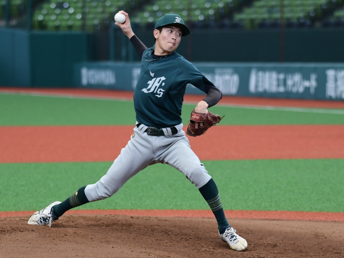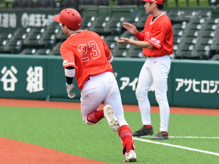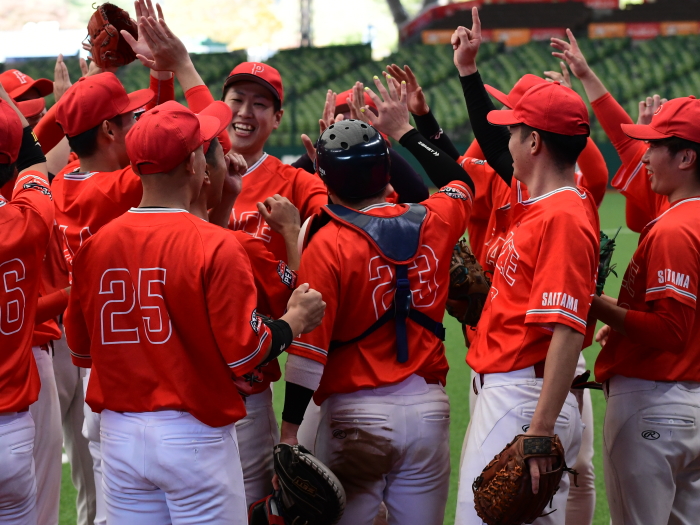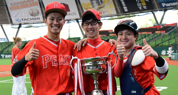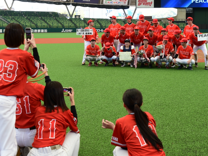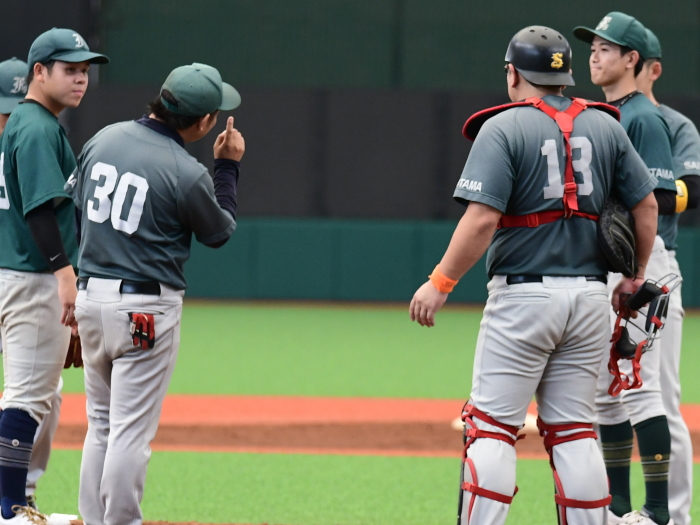 | 「昨年はプロスタに行くことだけを目標にしていましたが、今年は春先のリーグ戦から優勝することだけを目標にしてきたので優勝出来てとても嬉しいです。プロスタでは今年もベンチの雰囲気が一体となれたので自分たちの野球が出来ました。今日の試合では初回に先制点が奪えたことで、守りのリズムも良い形になりました。先発を託した河野も持ち前のアウトコースの出し入れが完璧に近かったと思います。来年はもちろん連覇を狙います。そのためには少ないチャンスでも得点が奪える打線と走塁に力を入れ、投手陣の負担を減らしたいです」 |