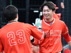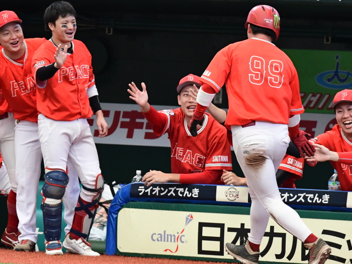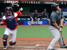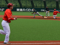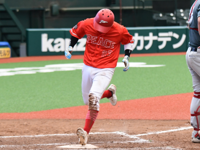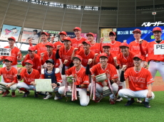 | PEACEは初回1番・小平が四球で出塁。次打者の内野ゴロで2塁に進むと3番・渡部がレフトオーバーのタイムリー2塁打を放ち1点を先制。 一方のBBファイターズは2回と4回にチャンスを作るもあと1本が出ず無得点が続く。追加点が欲しいPEACEは5回、6番・平田のスリーベースでチャンスを作ると、7番・岡本がきっちりとセンターへ弾き返すタイムリーヒットでまず1点。さらに8番・佐藤もヒットで続き1,3塁とすると9番・相川の犠牲フライの間に1点追加。3−0とさらにリードを広げた。逆転したいBBファイターズは最終回、1死から5番・荒木、7番・高橋らのヒットで2死1、2塁のチャンスを作るも、後一本が出ず完封負け。勝ったPEACEは昨年の雪辱を晴らし、初の関東草野球リーグ・土曜大会の王者に輝いた。 |