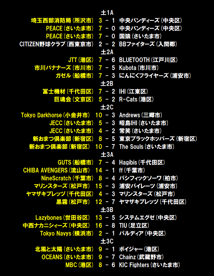 | 「初回は息子のタイムリーで先制し、2回、3回も相手のミスなどで得点が奪え、序盤から優位に試合を進められたと思います。先発をさせた息子も良かったですが。うちの守備陣も普段以上に安定をしていて、全体的に締まった試合ができました。しかし平均年齢が50代のチームなので、体力的には厳しいですね(苦笑い)年々、衰えてはいきますが、野球が好きなので、体力が続く限りは続けたいと思います。この調子で次週以降も楽しくプレーしたいですね」 |