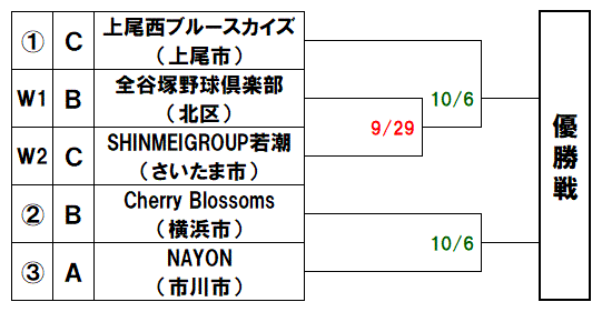 | 昨年1部・2部・3部の各階級でプロスタを経験したチームを始め、出場全チームが昨年CS以上を経験するなど強豪・名門チームが数多く揃った。全体1位通過の上尾西ブルースカイズ(上尾市)はエース松本が安定。打線も本塁打を量産する宮島ら強打者が下位まで並び総合力でリードする。今年は1回戦から出場のSHINMEIGROUP若潮(さいたま市)は昨年プロスタ進出を有力視されながらCSで敗れた悔しさを晴らせるか。対する全谷塚野球倶楽部(北区)は石田、米本、原田ら今年もタイプの異なる投手陣で勝負する。Cherry Blossoms(横浜市)は昨年、CSに出場すること5度目の正直で悲願のプロスタに初進出。今年も石川・青山ら好打者を揃え2年連続の夢舞台を目指す。対するNAYON(市川市)は俊足・好打のリードオフマン小暮を中心に抜け目のない野球で勝負強い。僅差の展開が予想されるCSの中では自慢の機動力にも注目だ。 |