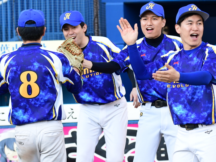 | 「勝ちに拘ること無く、楽しく野球をしようと試合前にみんなには言いましたが残念の一言です(笑)。しかし普段から投げている3投手がマリンでも投げて負けたので仕方が無いと思います。敗因をあえて挙げるとしたらやはり自分が試合に出たことですかね。そこから流れが変わった感じがします(笑)。今年はクライマックスシリーズ、優勝戦と戦えたので一年間が長く感じました。今日の優勝戦はチームにとって良い記念になると思います。来年は2部に上がりますが、これからもこのメンバーで楽しく野球がしたいですね」 |