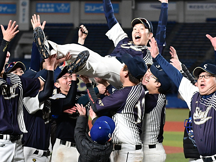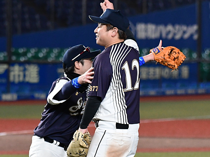 | 「今日は初回に2点を先取されましたが、その後もみんなが強い気持ちで試合を作ってくれたので最後まで締まった試合が出来ました。5回の鈴木(拓)の好走塁がチームに勢いをつけてくれました。あの5回で同点に追いつけたのは大きかったと思います。自分自身も代打で出場して、タイムリーが打てて本当に良い思い出になりました。うちは創部が1977年と伝統があるチームなのですが、すでに還暦を越えている栗原、斉藤も現役で若手に負けないくらいの打撃をします。監督業は大変なところも多々ありますが、これからもチームのために指揮を執りたいと思います。またチームの灯を絶やさずに、若い世代にもうちの野球を伝えていきたいと思います」 |