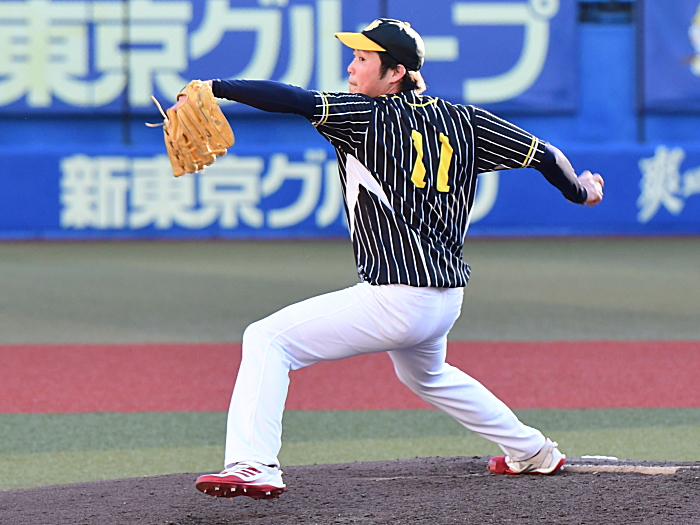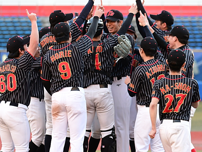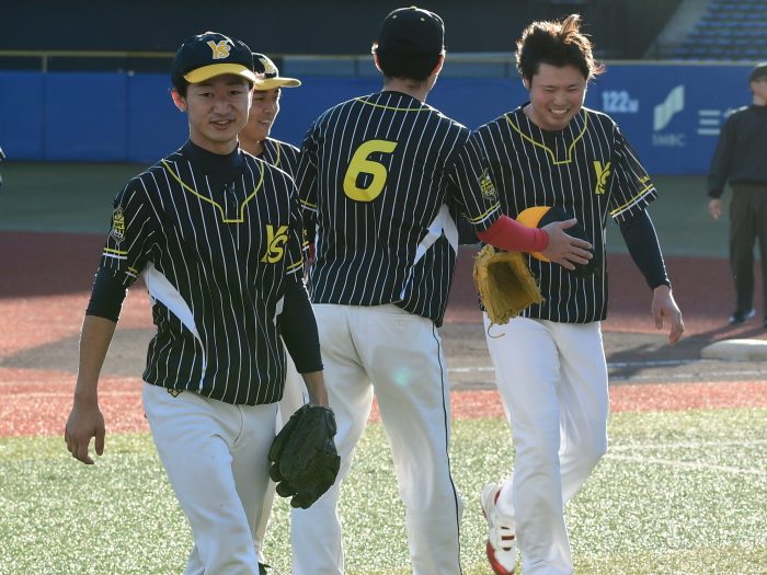 | 「今日の試合の勝因は自分の立ち上がりが良く、また個々の良いところが思う存分に発揮できたことです。この試合もうちの信条であるノーサイン野球で臨みましたが、各々がしっかりと状況を理解してプレーをしてくれました。高校球児の時にはここマリンスタジアムで試合ができなかったのですが、今日はマリンで試合ができたのでその当時のことを考えると嬉しさが倍増ですね。来年はもっと強いチームとの試合になるので適材適所でサインプレーを取り入れます。またうちのメンバーは良い意味で個性が強い人の集まりなのですが、監督として今年以上に上手くチームをまとめていきたいと思います」 |