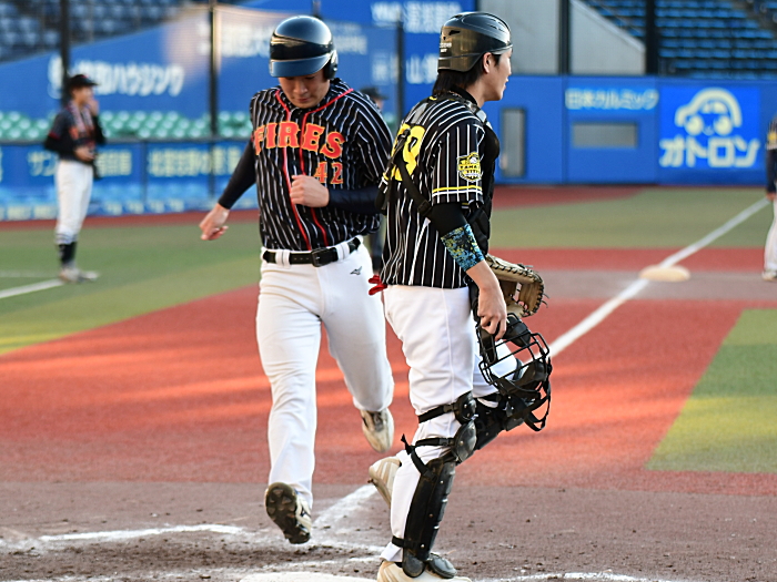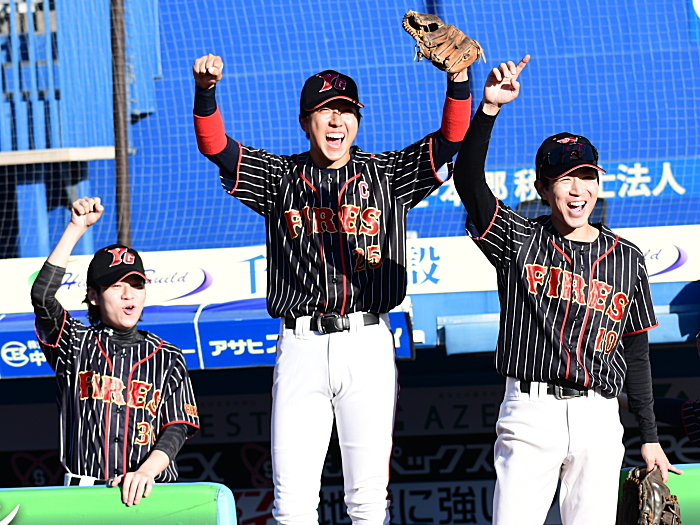 | 「今日の試合も優勝を目指して、勝ちに行くメンバーで試合に臨みましたが負けてしまい非常に残念です。しかしプロスタでも全員野球はできたと思うのでその点は良かったと思います。相手のYGファイヤーズさんは得点圏にランナーを置いて犠飛などで確実に得点を重ねられるなど、上手い野球で徐々に相手のペースになっていった感じでした。序盤に最終回のような得点圏にランナーが置けるチャンスを作れれば、違った展開になったかもしれませんね。監督就任3年目でようやくチームが形になりました。今後は一人でも多くチャンスに強い打者を育てたいです」 |