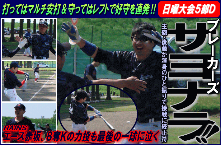 | RAINSは初回、2塁打で出た松尾を3塁に置き、前川の犠牲フライで1点を先取する。ブレーカーズもその裏、四球と2盗で1死2塁の好機を作ると3番・越川がライトへタイムリーを放ちすぐさま同点とした。再び試合が動いたのは4回。RAINSはヒットと四球で2死満塁とすると2番・前川のショート強襲打でまず1点。続く3番・別府がフルカウントから押し出し四球を選び2点を勝ち越した。またしても追う立場となったブレーカーズだったが、ここから持ち前の粘りを発揮する。その裏2死2塁から7番・鈴木がタイムリーを放ち1点を返すと、最終回にはヒット2本で2死ながら2・3塁のチャンスに、4番・後藤がカウント3ボールからの4球目を振り抜くと打球はショート頭上を鋭く破るサヨナラタイムリーとなり、ブレーカーズが土壇場の逆転劇で開幕2連勝を決めた。 |