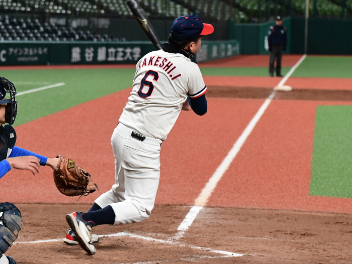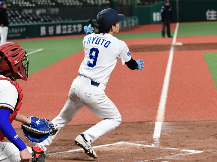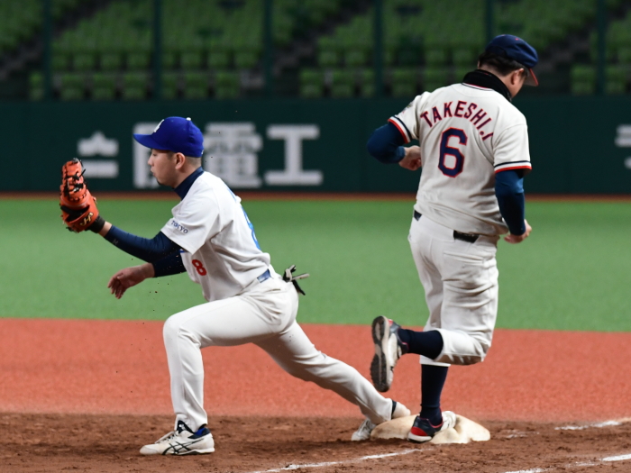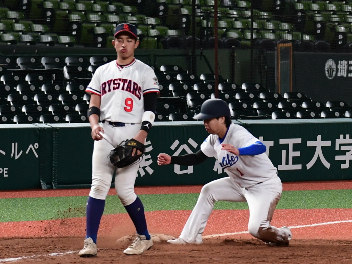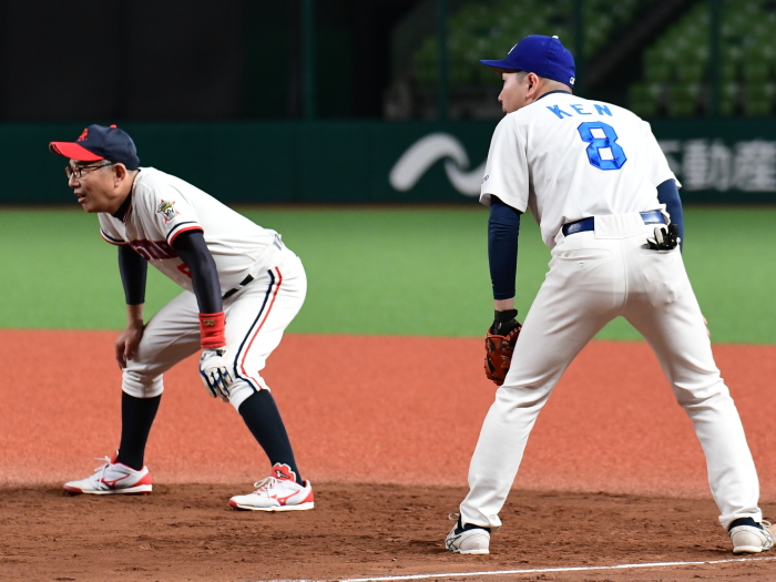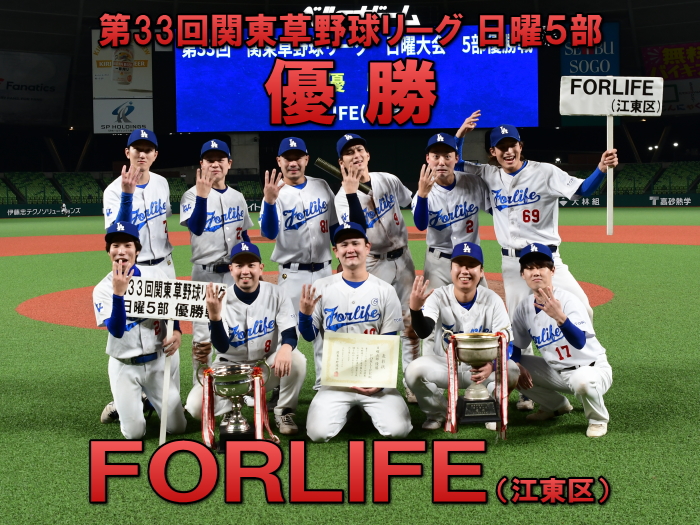 | FORLIFEは1回表、先頭の1番・須藤が初球をいきなりレフトへ本塁打を放ち1点を先制。さらに次打者が内野失策で出塁すると2塁へ盗塁を決め無死2塁と追加点のチャンスを作る。1死後迎えた4番・米望(正)がセンター前にタイムリーヒットを放ちこの回計2点を先制する。追うドライスターズは直後の1回裏にすぐさま反撃する。先頭の竹内(駿)が四球で出塁すると内野ゴロで2塁へ進んだ後、3番・輿水のライトへの打球が失策を誘いまず1点を返す。さらにその後内野失策で1・2塁とした後、5番・山本の内野安打の間に2塁走者が生還し2−2の同点に追い付く。その後2死となるもここで迎えた7番・伊藤がセンターの頭上を越えるランニングホームランを放ち3点を追加。この回計5点を挙げドライスターズが一気に試合をひっくり返した。追うFORLIFEの反撃は3回。四球とヒット、盗塁で2死ながら2・3塁とした後、迎えた8番・日色がレフト前に2点タイムリーヒットを放ち4−5と1点差に詰め寄る。FORLIFEは4回には2つの失策の間に1点を返し同点とした後、続く5回には2死2塁から1番・須藤がセンターオーバーのタイムリー2塁打を放ち1点を勝ち越す。さらにその後四球と内野悪送球の間に2点を追加しこの回計3点。8−5と逆転に成功した。試合は結局FORLIFEがこのリードを最後まで守り切った。 |